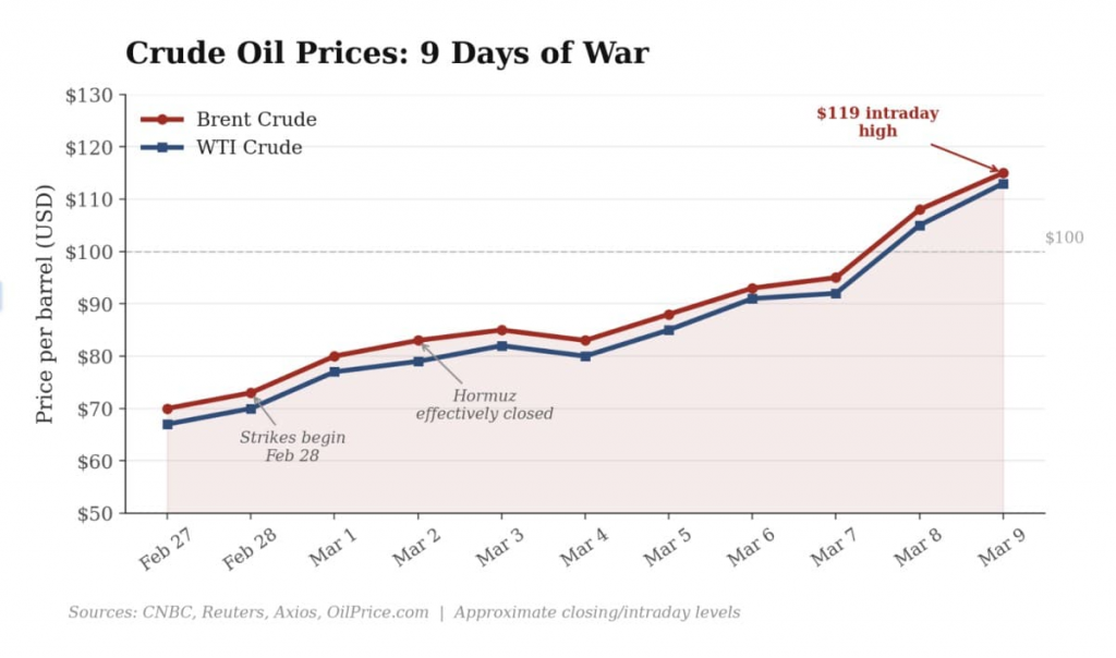 - Geopolitical news risk: Oil prices are directly affected by military actions, diplomatic statements, and infrastructure attacks. A single tweet from a head of state or a missile strike on an oil facility can move prices 5-10% in minutes. This is faster and less predictable than most crypto market moves.