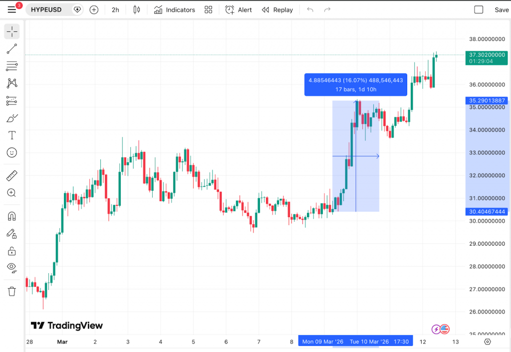 HYPE is Hyperliquid’s native token and benefits from increased protocol revenue when trading activity rises. More volume on oil perps means more fees generated by the Hyperliquid protocol, which supports the value of HYPE.