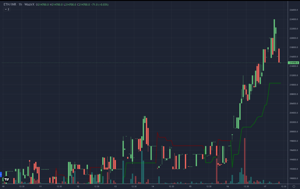 ETH supertrend Indicator, source, WazirX