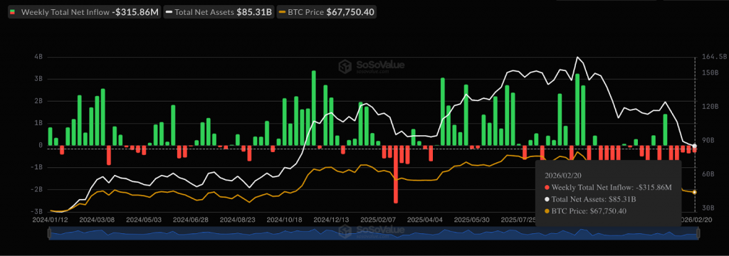 Spot Bitcoin ETFs also saw net outflows of around $315.9 million last week, reinforcing the idea that institutional demand was weakening and contributing to broader selling pressure.